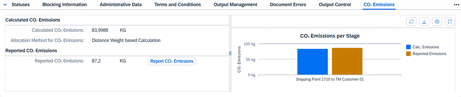 These values are also available in a dedicated tab within the Freight Order, allowing users to analyze emissions per transportation stage.
