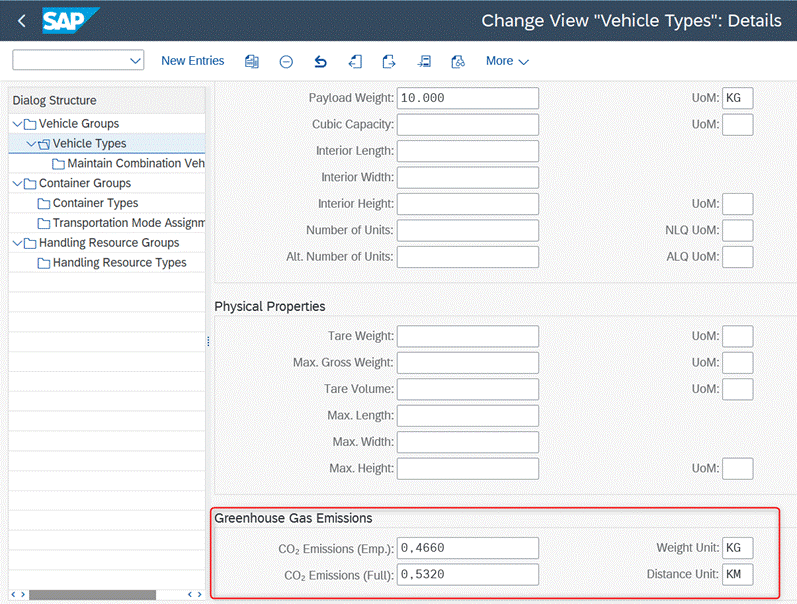 The emissions information is also replicated into the corresponding Freight Units, ensuring that the data remains available across all transport-related documents.